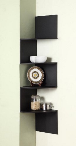 Wall Hanging Corner Storage Spacious Shelving Unit in Black Finish Review